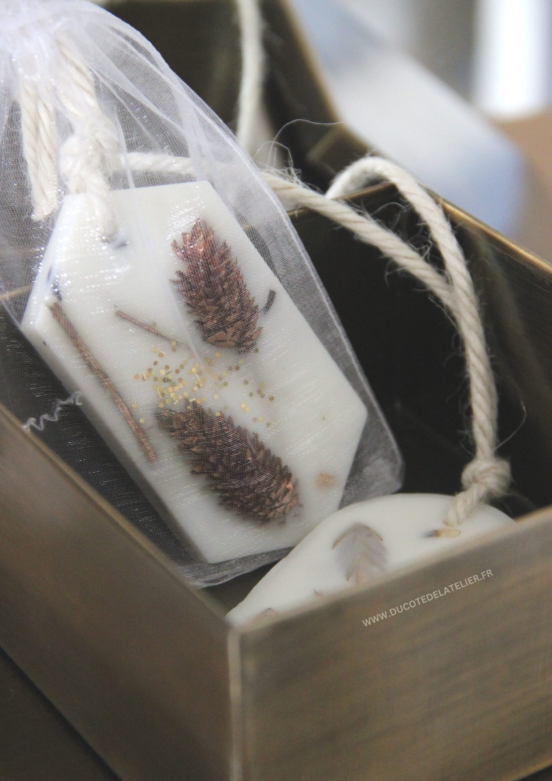 Idée déco : présentez une fleur sur le dessus des 2 boîtes.