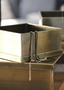 Jolies boîtes en métal doré, en plus de leur bel effet matière, vous pourrez ranger tout plein d’objets : bijoux, lunettes, pharmacie, fondants parfumés, clés, …