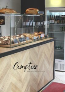 Comptoir de magasin en métal & bois style chevron – point de Hongrie – Réf 054