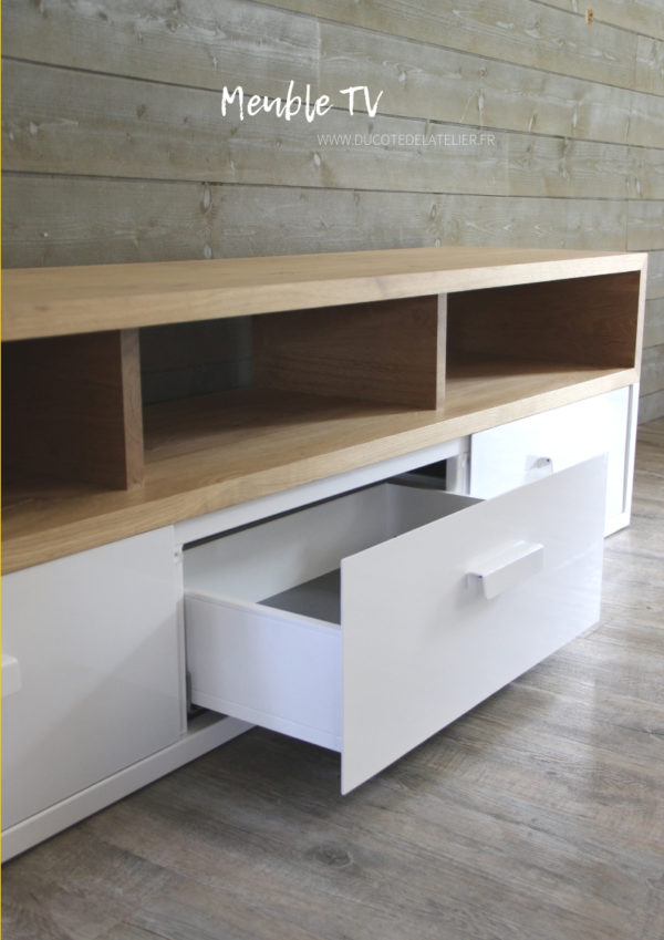 Grand rangement dans ces 3 tiroirs : CD, livres, télécommandes, dessous de tasse et dessous de plat pour prendre l’apéritif sur la table basse,…